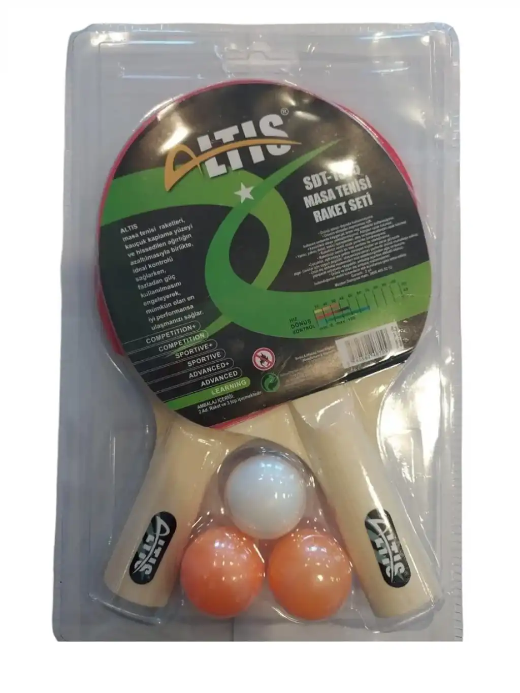 ALTIS SDT-1515 MASA TENİSİ RAKET SETİ 2 RAKET 3 TOP AMBALAJLI