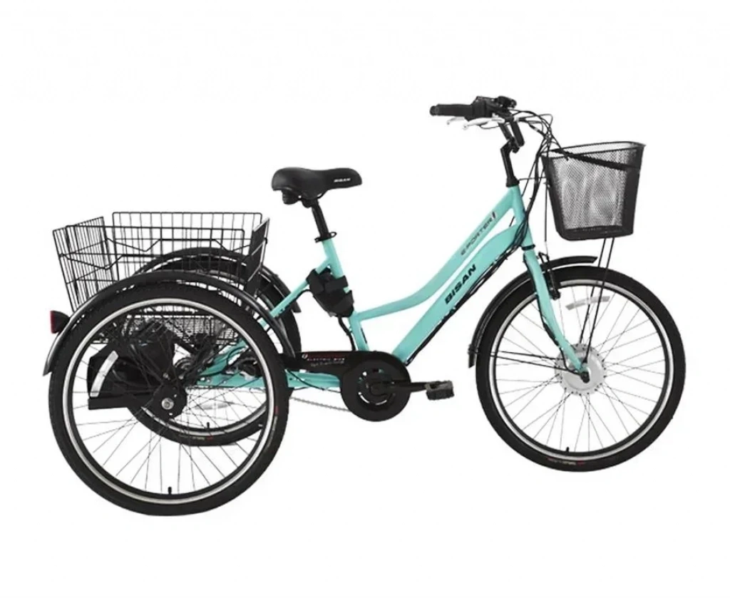 BİSAN e-PORTER ÜÇ TEKERLİ ELEKTRİKLİ BİSİKLET 44CM V 24 JANT 3 VİTES TURKUAZ SİYAH