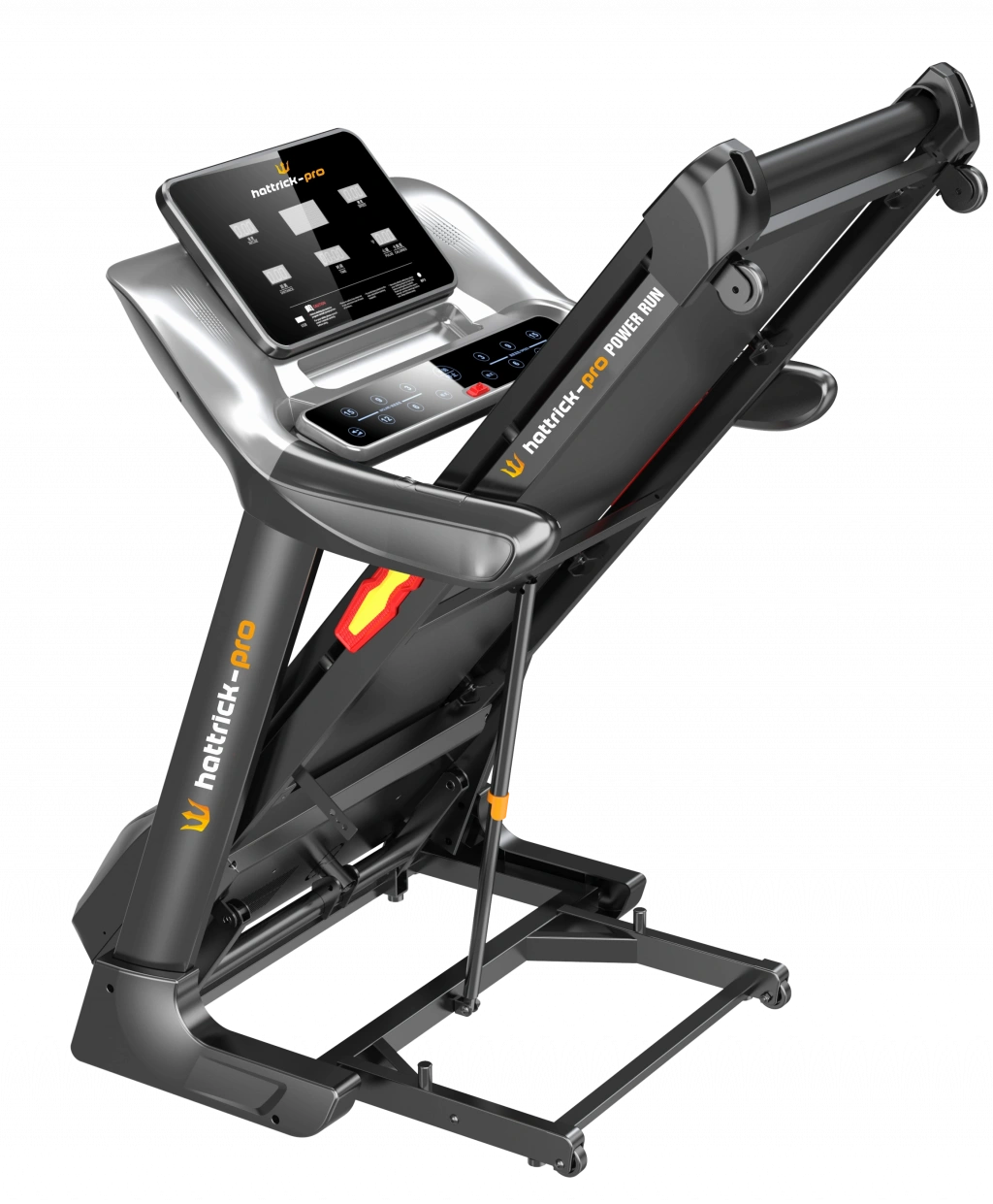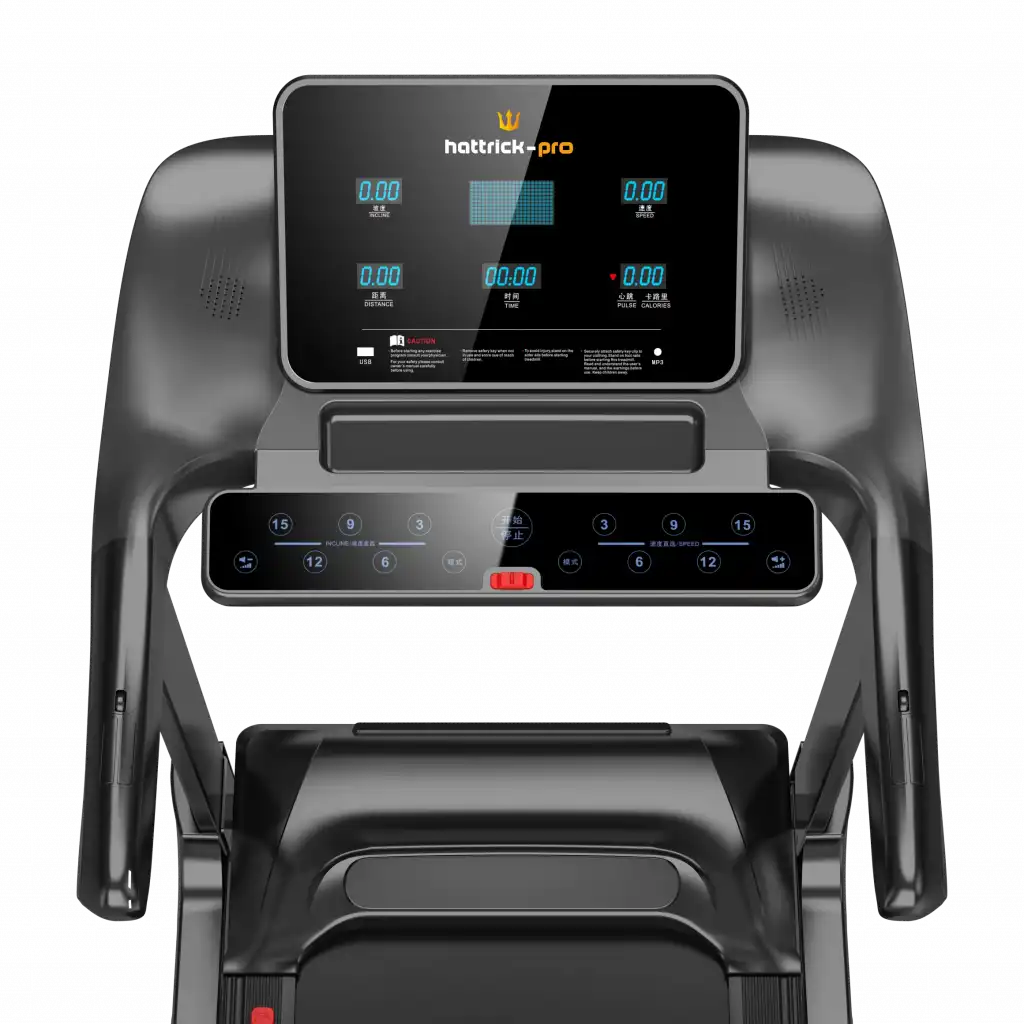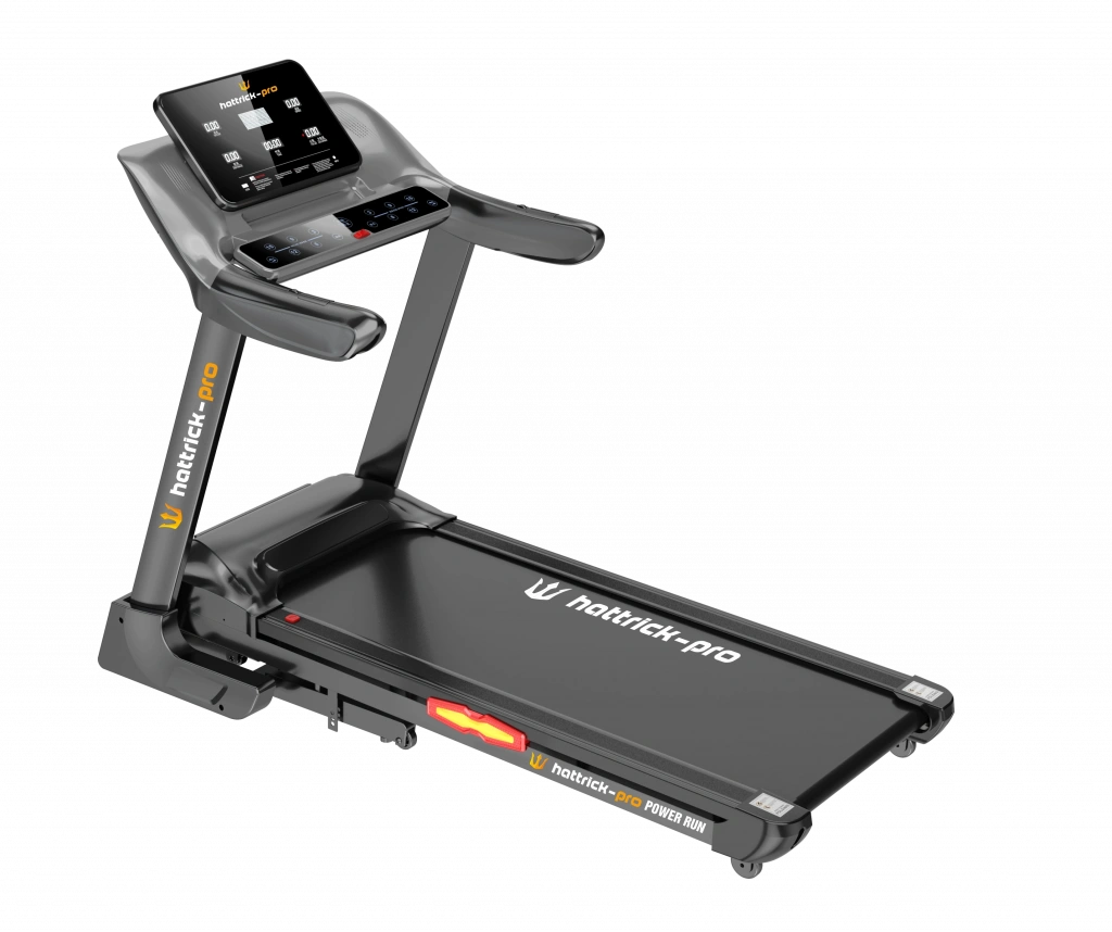 HATTRICK - PRO POWER RUN PROFESYONEL KOŞU BANDI Motor: 3,5 Hp AC Motor Hız Aralığı: 1 - 18 km/h Ekran: LED Ekran Eğim: 0 - 15% Koşu Alanı (mm): 1370 x 480 Max Kullanıcı Kapasitesi (kg): 150 Kg Diğer Özellikler: Ø Eğim, hız, toplam zaman, katedilen mesafe, kalori ve nabız göstergeleri, Ø Acil durdurma butonu, emniyet anahtarı, Ø Mp3, telefon ve su şişesi koyma yerleri,