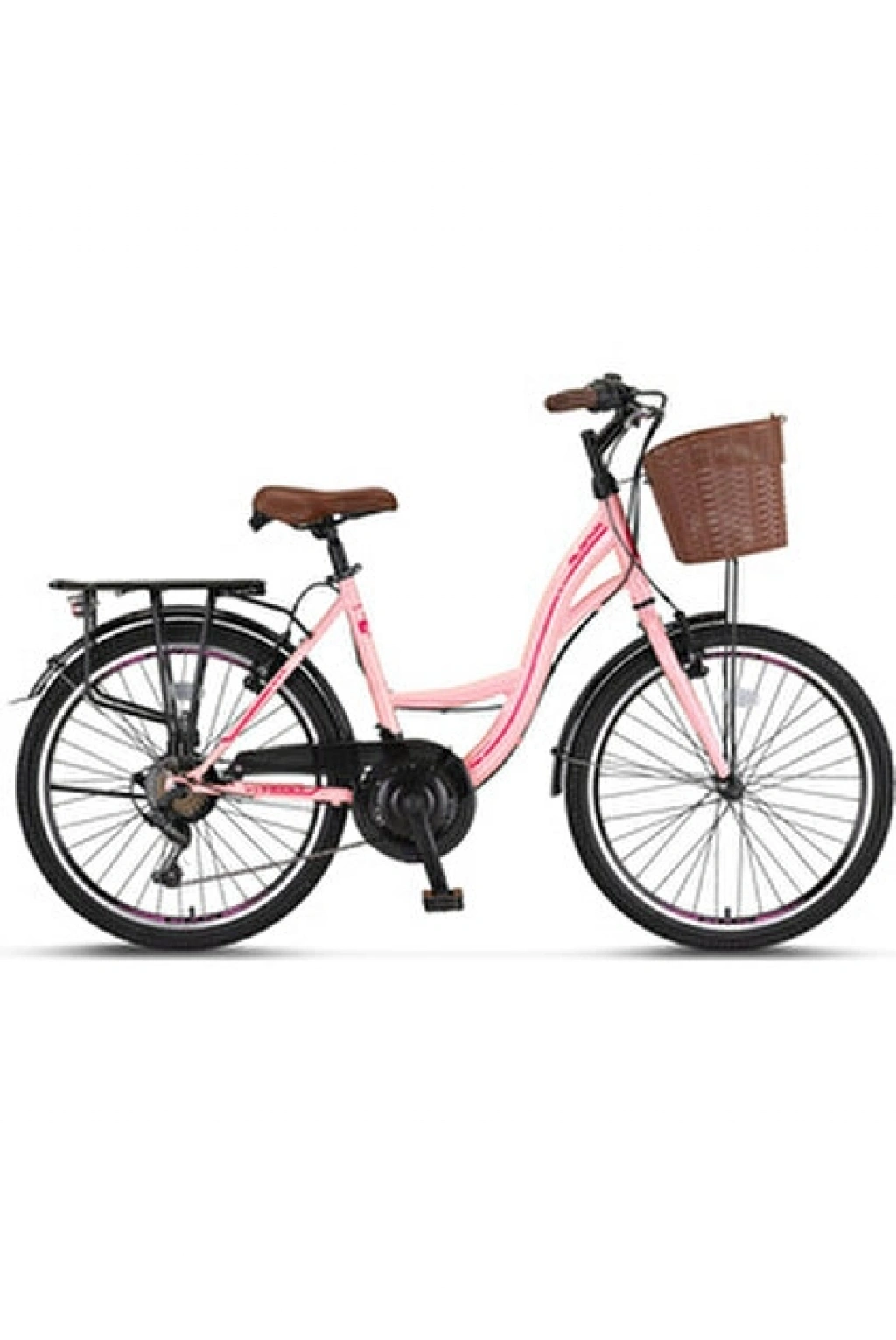 ÜMİT 2410 ALANYA SEPETLİ KADIN ŞEHİR BİSİKLETİ V 24 JANT 21 VİTES TOZ PEMBE