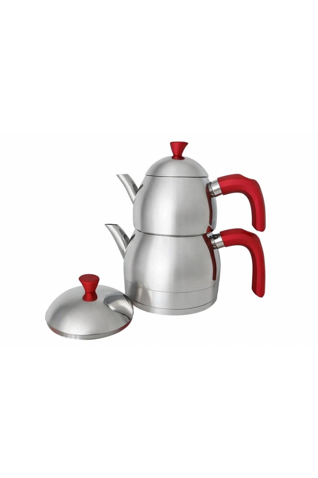 VIVALDI PİRAMİT ÇELİK MAXİ BOY ÇAYDANLIK 4 PARÇA KIRMIZI KUPLU GORGEL.0430